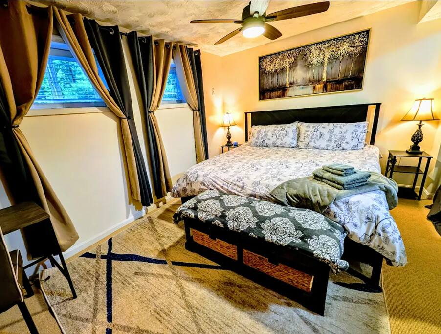 Guests have the whole home and property to themselves. Guests have access to all the member amenities of the lake. There is no direct water access from the home, as the property is adjacent to the lake but not waterfront. The closest waterfront access points are the dam, near the playground (.3 mi, 8 min walk) or the boat launch at the end of the lake (.5 mi, 10 min walk). The closest beach to the house is Cumberland Beach, which is 1.5 mi from the house. Note - All adult guests must be registered with the front security gate in order to access the property. Registration will take place at the time of booking.